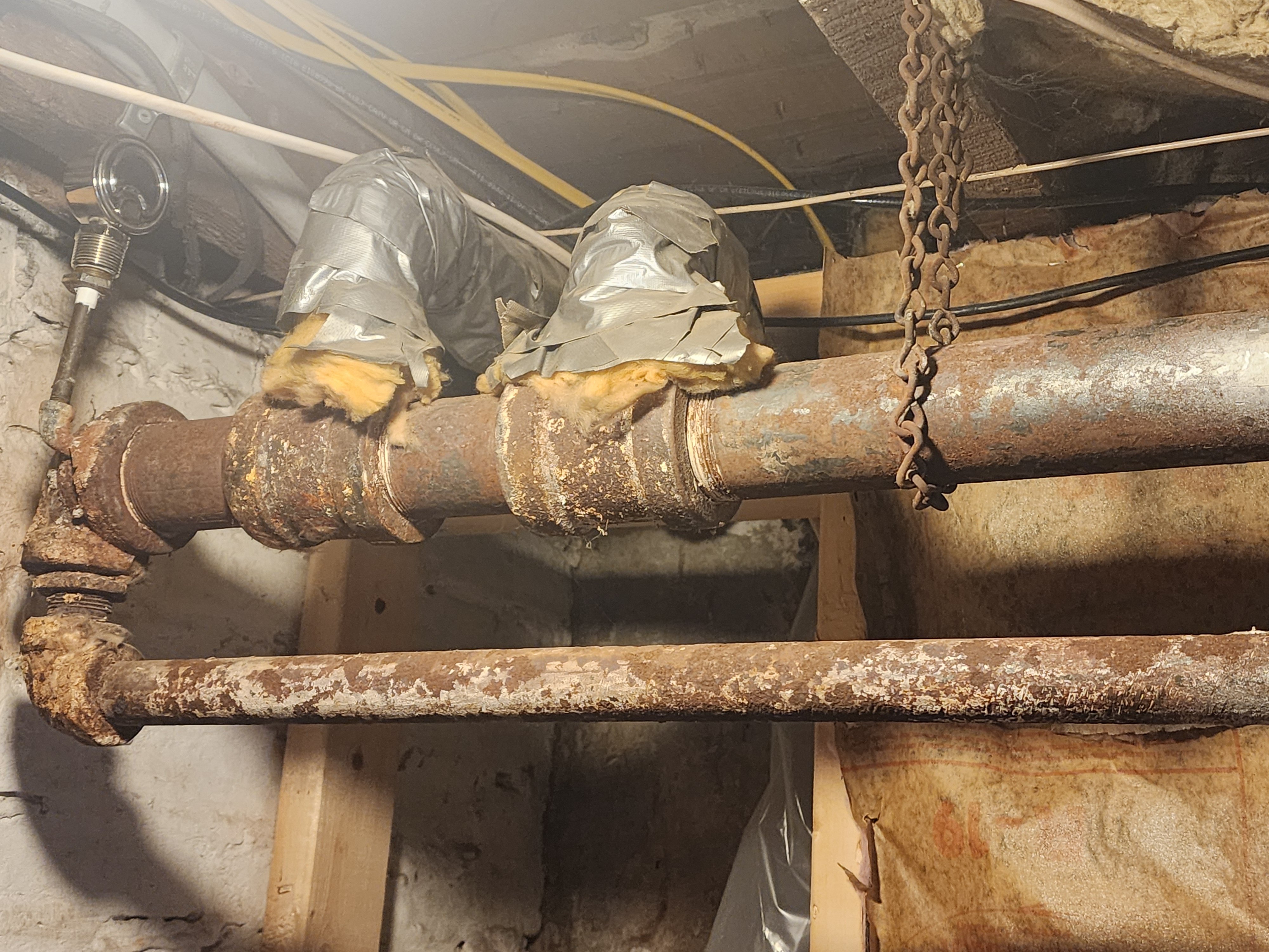Thank you! I will give you a call this coming week sometime! Attached are some pics. I've always thought the strangest part is that there are two pipes, one much larger than the other, that are connected at the end of the "unfavored" main (as if it's one long pipe folded in half). My guess is that the lower pipe is a dry return (???) The main itself has this odd section where it comes to a tee and takes a 90 degree turn upwards, then another 90 degree turn to continue out. The tee also connects into the dry return (???), so steam gets up into that pipe too. The two radiators whose risers branch up right before this odd configuration are two of the ones that have serious trouble getting steam. (one is on the 1st floor, the other on the 2nd). I know those main vents are undersized, but like I mentioned, I completely removed the one at the end of the longer "unfavored" main and air vented out of the stem, but it made no difference whatsoever. Still took an hour for true steam to get down there.