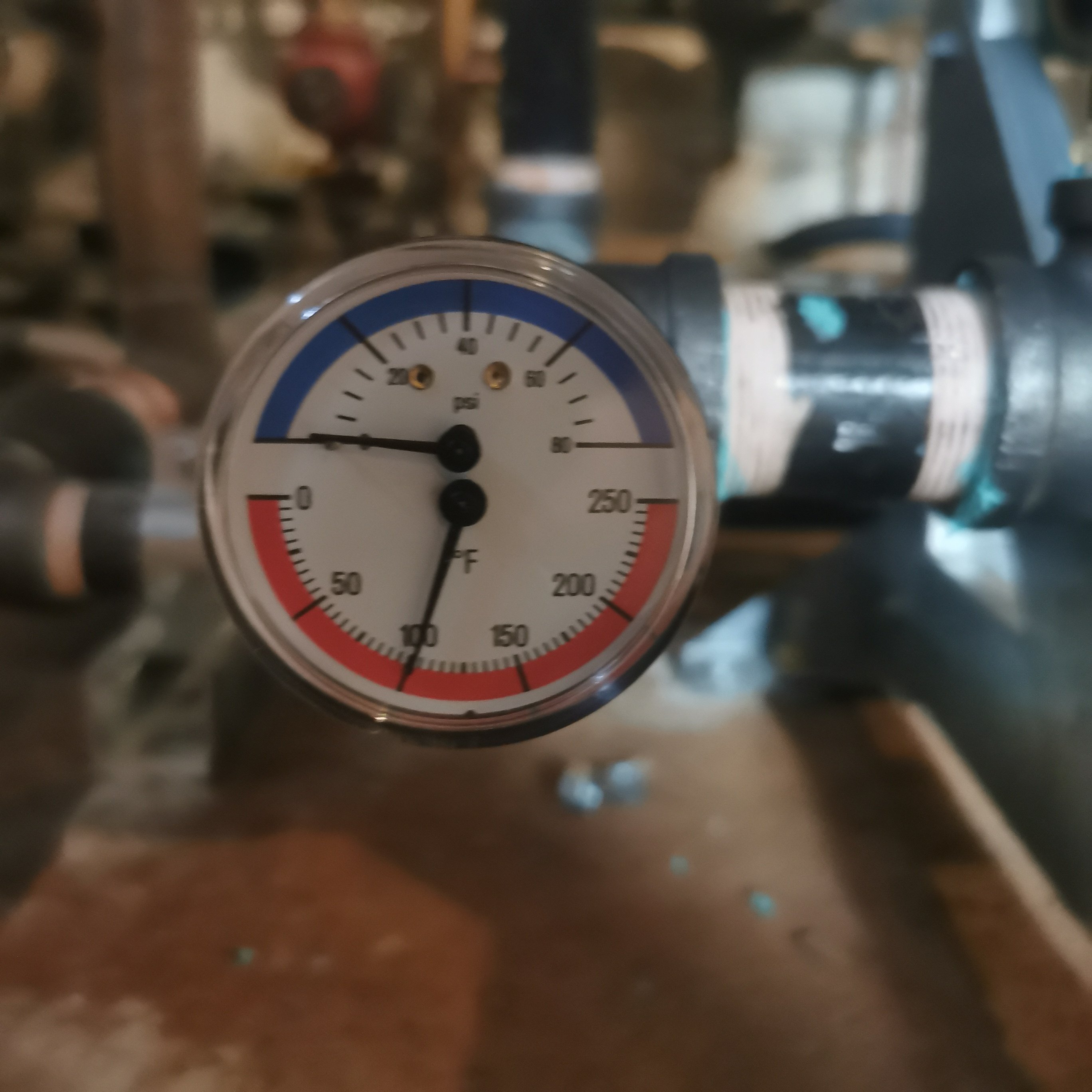 I don't see any evidence of pipe dope or tape used on it - it just screws in. I'm sure you guys see more gauges/thermostats/tridicators than I ever have but I haven't seen anything else that only shows temp in F unless it's 80 years old, while this tridicator is brand new - it makes me suspect they're skimping and it could be poor quality. The previous Weil McClean oil boiler that was here's tridicator was displayed in both C and F and if I recall, PSI +kPa.