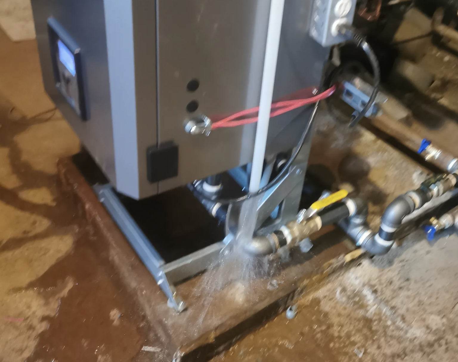 @sjh said "I lifted the lever on the pressure release valve, thinking that would increase pressure in the system. Did it slowly and carefully, only lifting it a little at a time. Gauge showed no increase in pressure. I increased the pressure I was adding to the system at a faster pace. Still no difference. Then I added it a bit faster, still no difference in pressure showing on the gauge. Then, the release valve for the boiler started shooting water out:" and showed us a photo of water pouring out of the relief valve white safety drop tube.