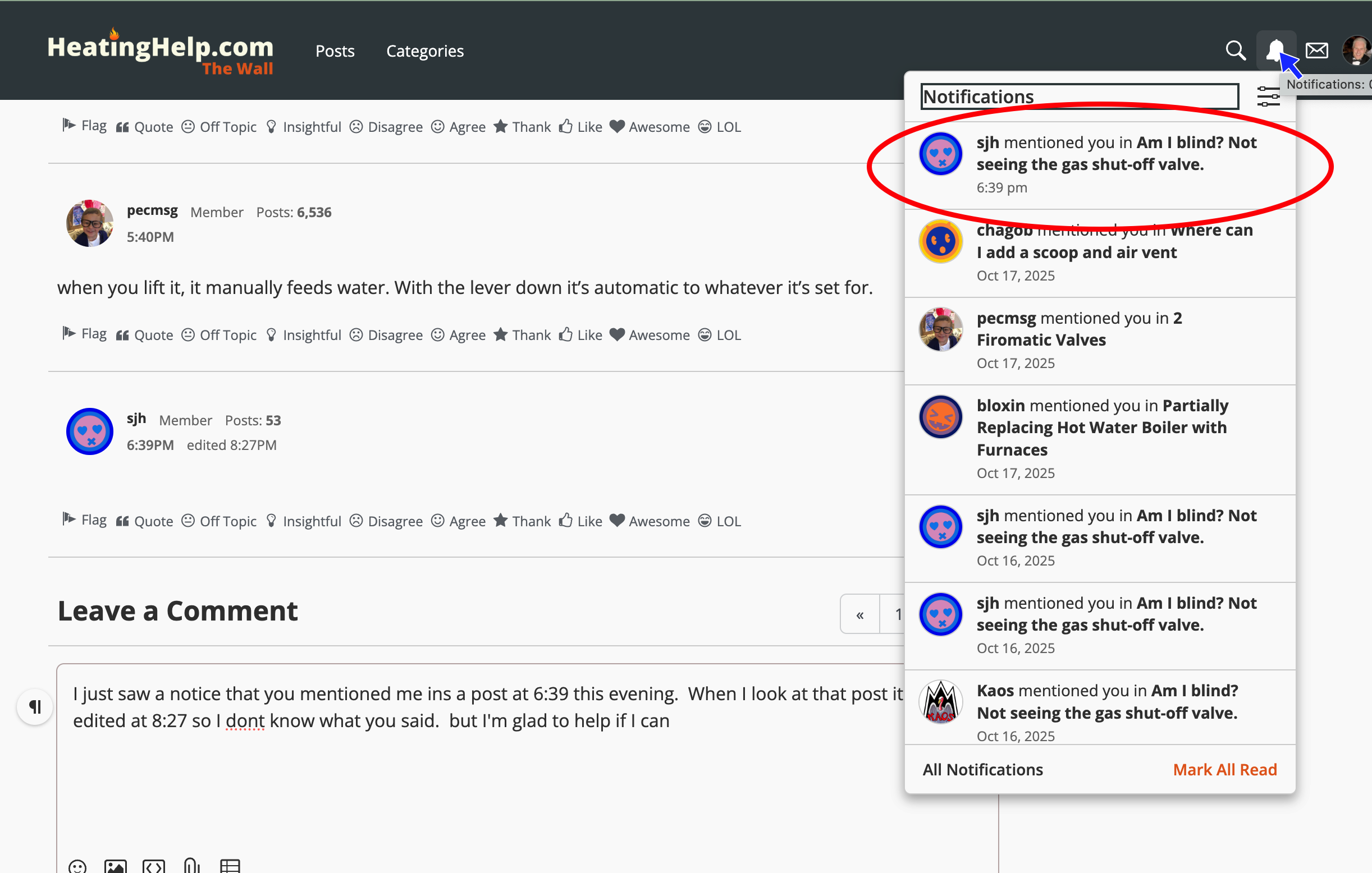 I just saw a notice that you mentioned me ins a post at 6:39 this evening. When I look at that post it was edited at 8:27 so I dont know what you said. but I'm glad to help if I can