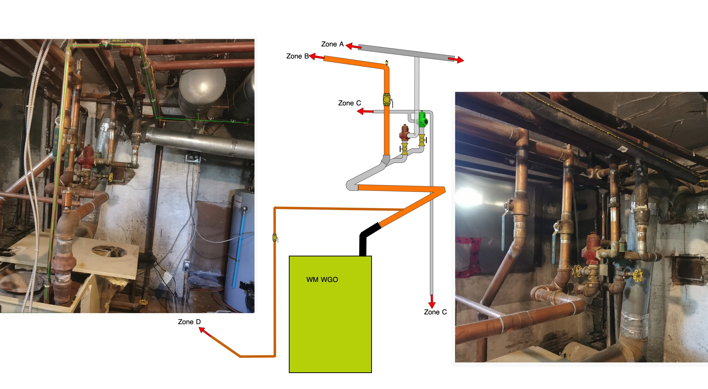 I don't have names or numbers for the zones other than which apartment they're supposed to be connected to. 'Zone 1, Zone 2,' I don't call them that, they're not labelled as such, and in a couple of cases I'm not entirely sure which rads/baseboards are on which and which pipes are connected to which.