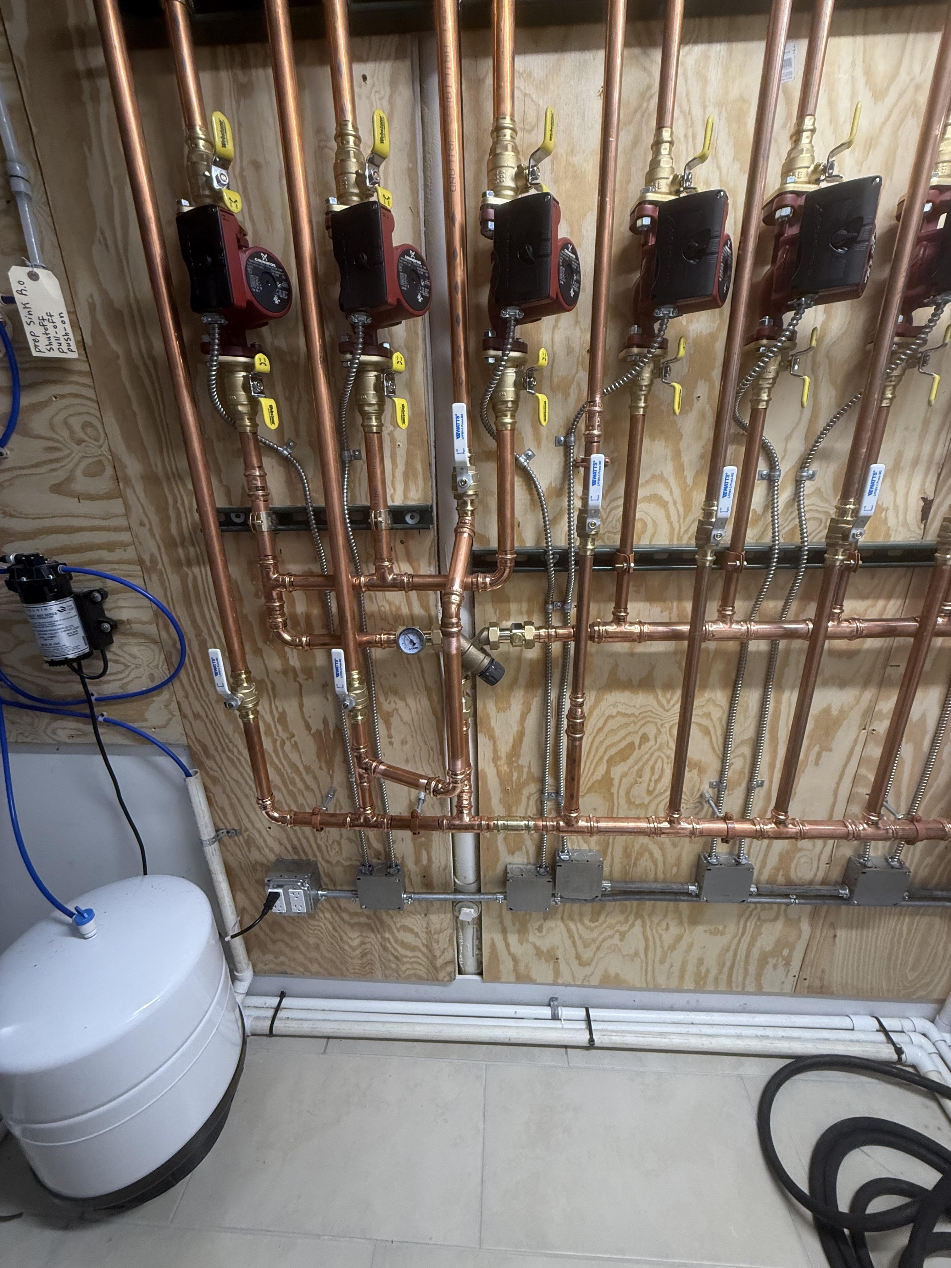 Most of the header is 11/4" then drops down to 1" for the low temp zones. There's a lot of zones here but not a high btu demand, 3 of the high temp zones supply a single 10' baseboard, the other 2 supply a single 16' baseboard. I did size that, although dropping down at the end isn't something we've done before, anything good or bad with that?