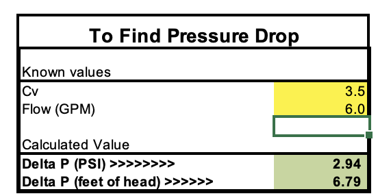 If a valve has a Cv of 3.5 that means if you put 3.5 gpm through the valve you would have a pressure drop across the valve of 1 psi