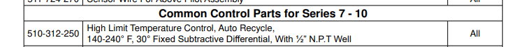 I'm looking for any information available for replacing the High Limit Temperature Control part number 510-312-250 on this boiler.