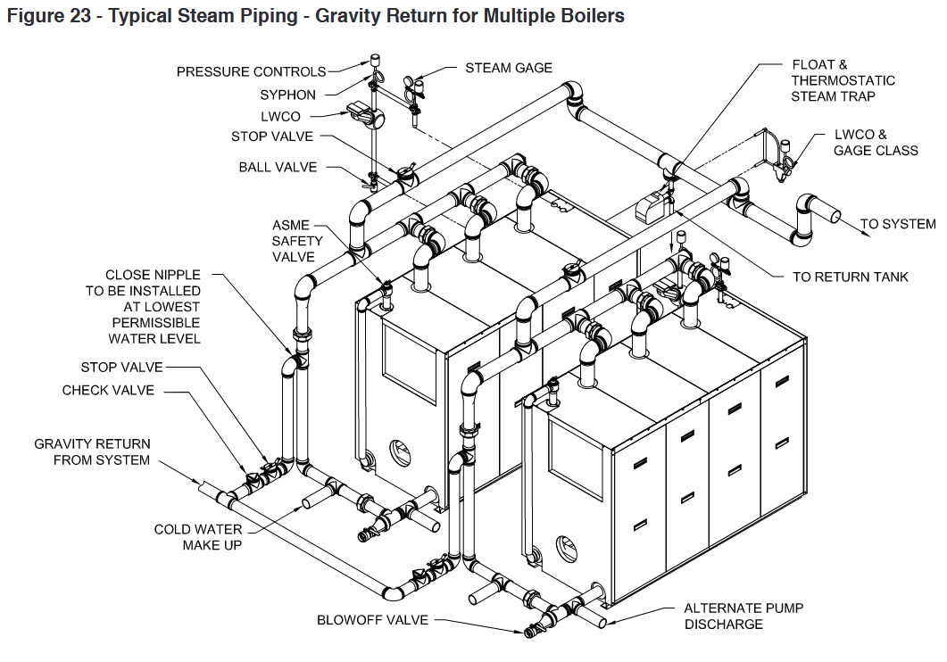 It is my understanding from time to time they will be running both boilers at the same time. I brought the colluding header to their attention before I posted. They do intend on addressing that issue. The installing company said they were also going to use threaded 90s at the boiler risers. (Ouch, 5" 90s, get out the chain wrenches. When I get an update I'll let you all know.