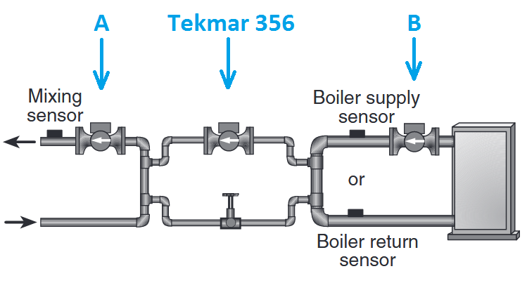 Mix supply sensor, doing that with the Boiler supply sensor is contingent on the BOIL MIN adjustment and could be confusing. Sure add that to your testing tool box.