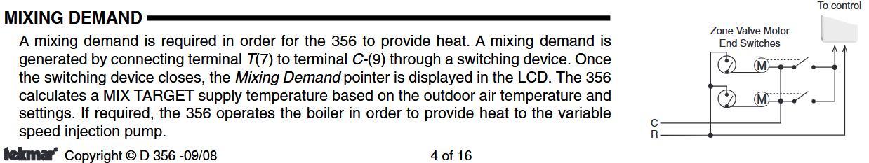 The way I understand this control; The Tekmat 356 has control over the boiler for space heat. So if you want space heat you have to close 7 to 9 (Demand). How that is actually done depends on how the system control is built or configured.
