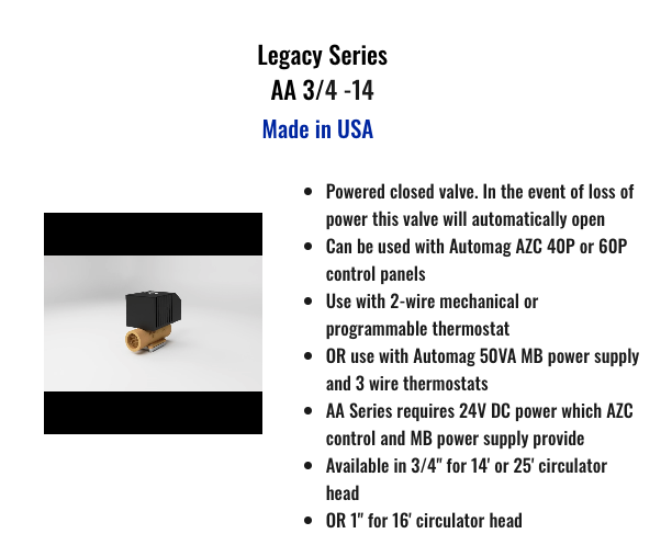 There are two versions of the Automag zone valve the AA is a DC, they offer an AC version also.