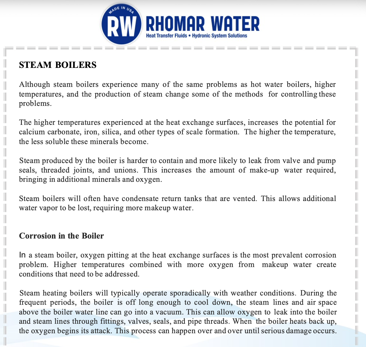 So in my mind, the best way to keep your boiler from seeing premature rotting death is to use makeup water that was recently boiled, and to use a product such as 8-Way that has oxygen scavenging capability as well as the known corrosion-reducing pH booster chemicals.