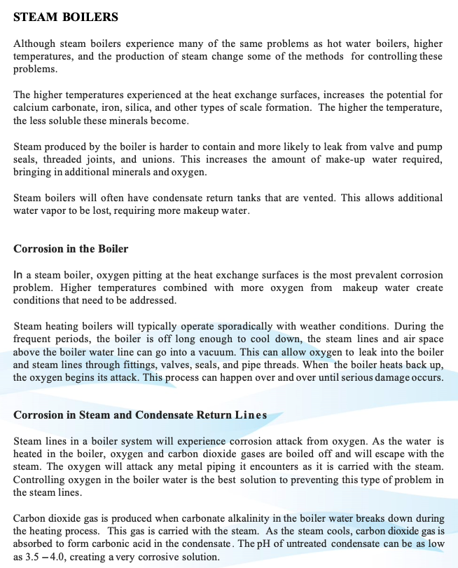 Steam specific manufacturers refer to mechanical deareation ad chemicals with sodium sulfite O2 scavengers, and ph control. So as @ethicalpaul suggests treating the steam boiler is just as important, maybe more so, as treating a hydronic boiler.