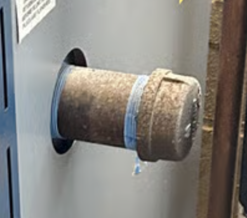 @Day_Tripper that is a lot more water than I like to see being added. Look for leaks of steam or water, especially the vents. There is also the possibility that your boiler has a hole in it as seen in the above picture (but probably smaller). I want to see less than 1" of drop in the gauge glass every month or so during the heating season. Using as much water as you are using will reduce the lifespan of your boiler. Of course if it already has a hole in it that concern is in the past.