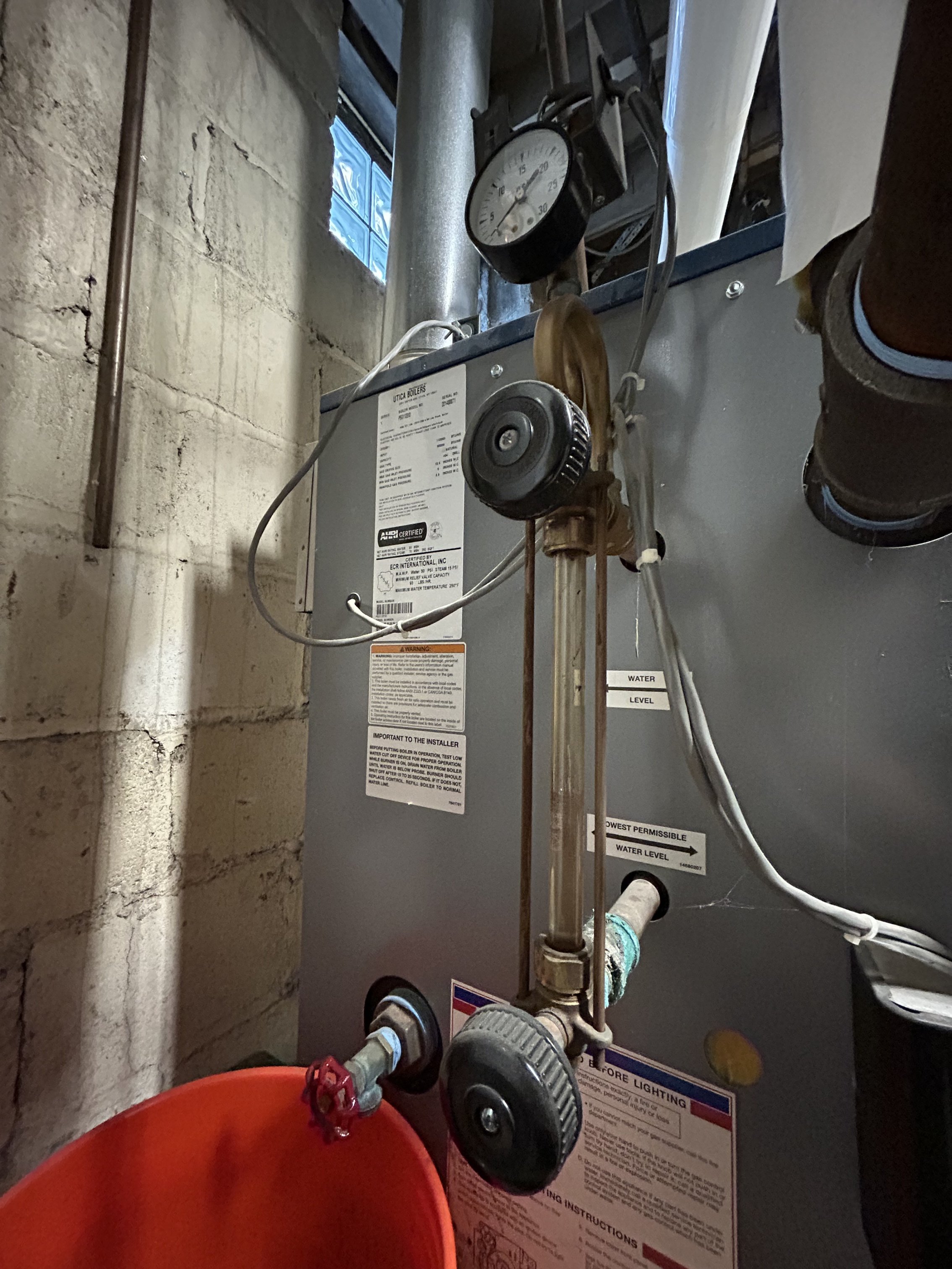 Also ignore the absolutely disgusting water, this is a picture I took right after we moved in. I doubt the previous owners even looked at the boiler except to dump endless cold water make up water from the manual valve.