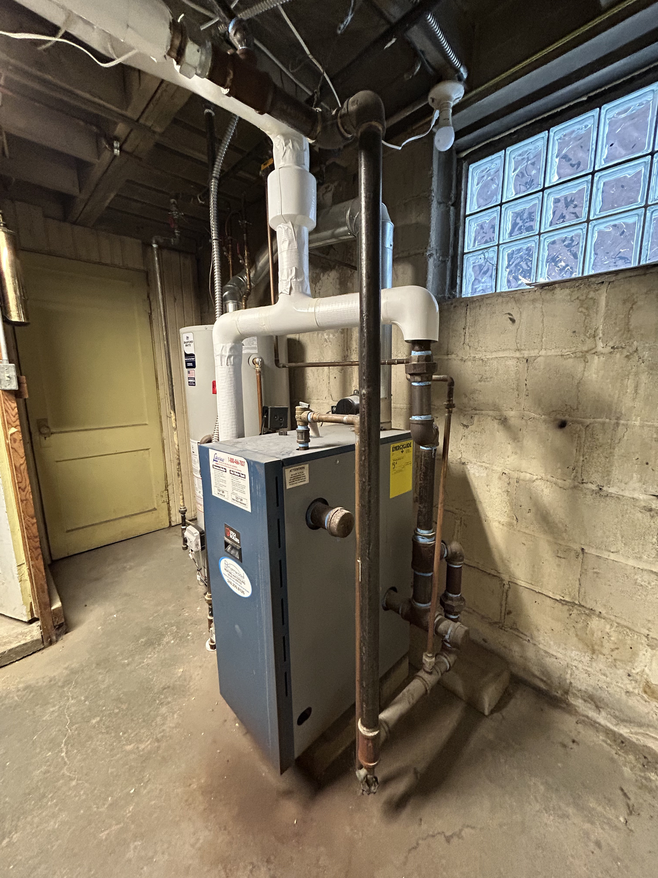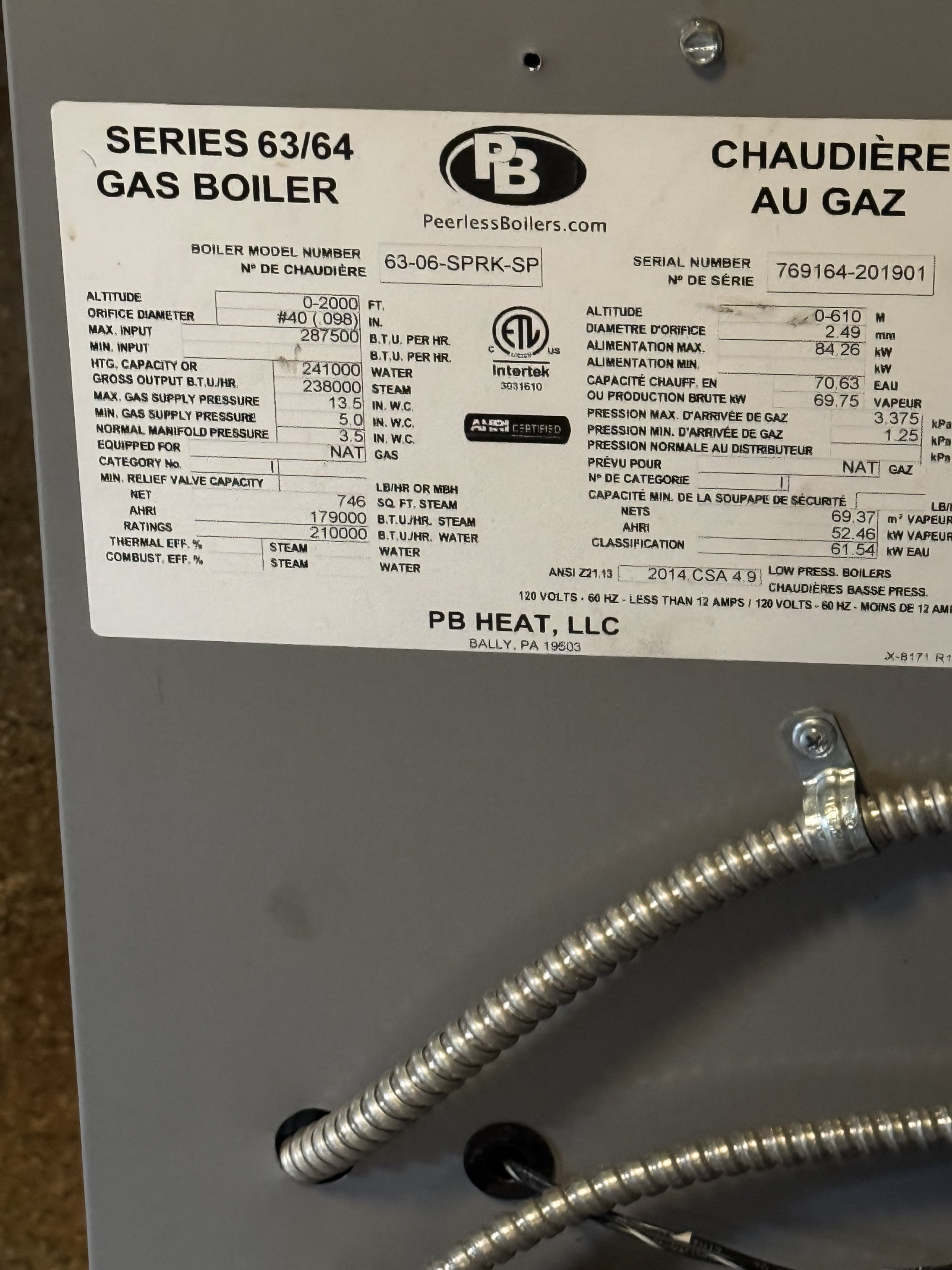 We need more pictures. Front, and other side of the boiler, showing all the piping going out of and into the boiler.