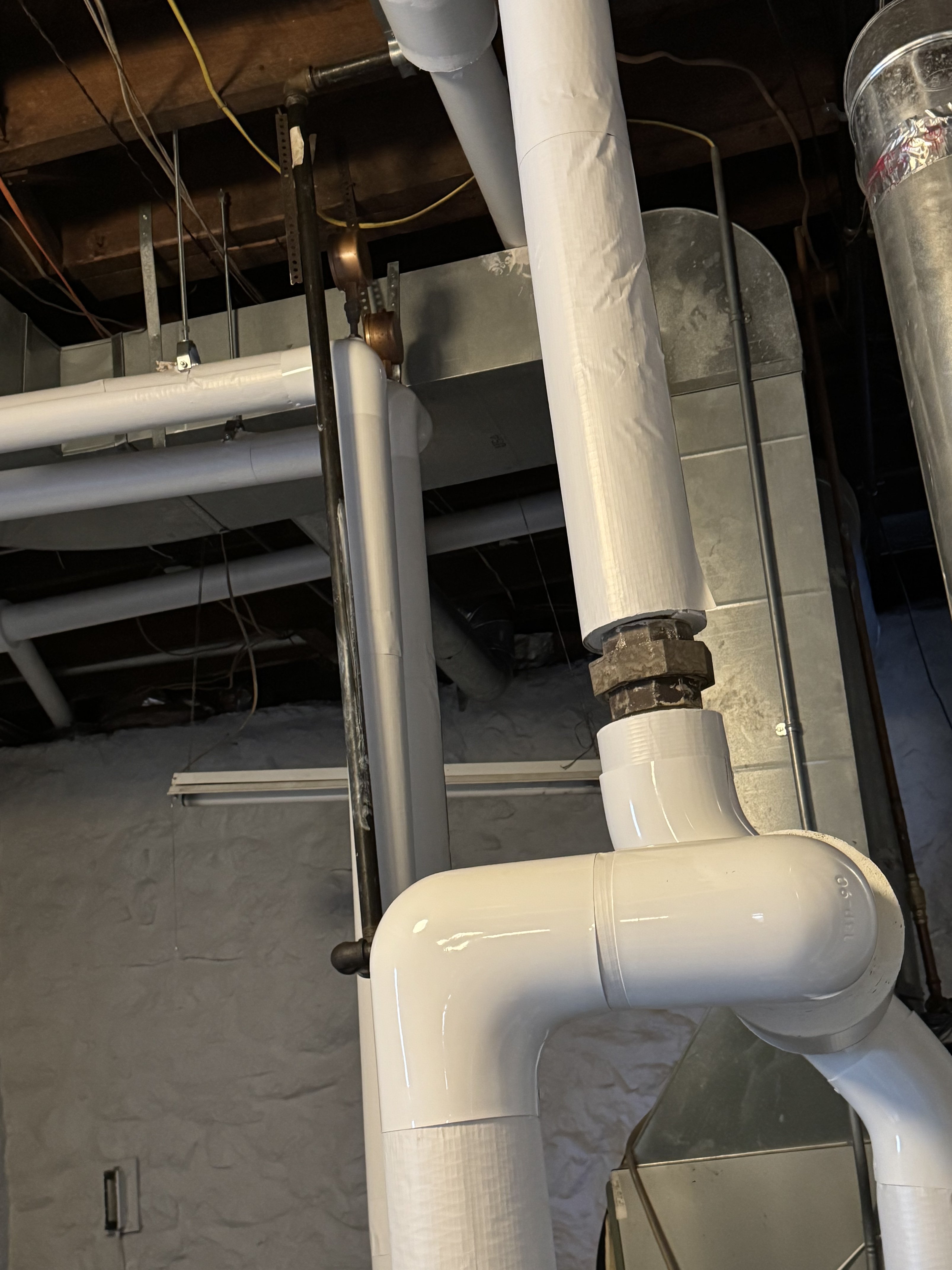 My bad missing that other main vent. I'd prefer to see another vent at the end of the blue line but I see your runners are exceedingly long. And then you could do away with the one at the end of the shared dry return. Kind of a tough call.