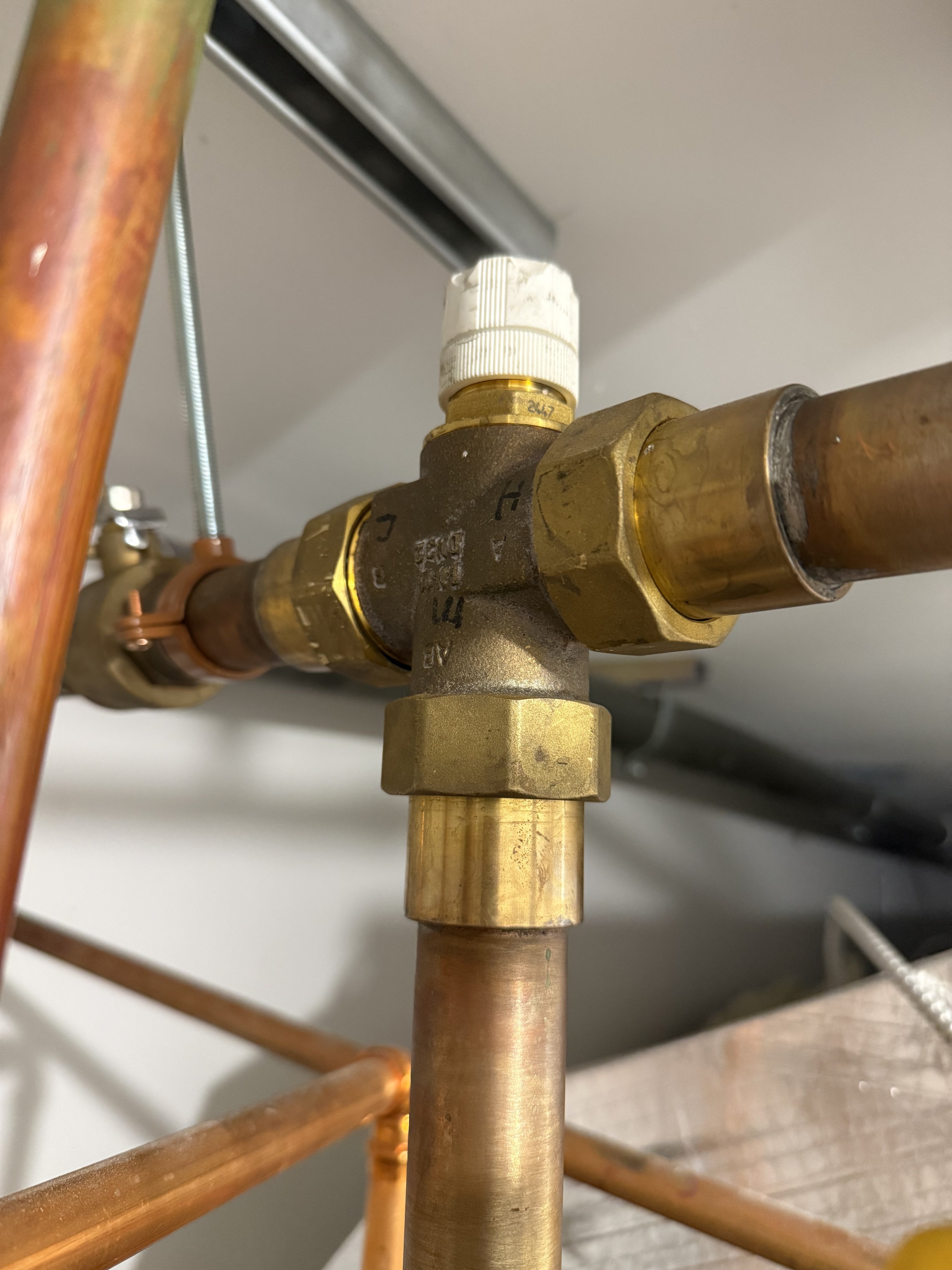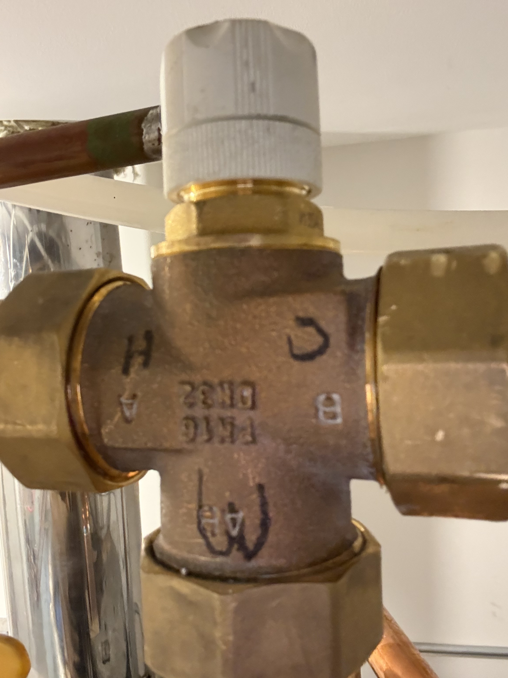 so I keep dialing that thermostatic mixing valve down because I don’t want that hot of water over here. In fact I think 190 is the Bosch boiler high limit. But I dial it down and then all the sudden it’s too much. I think it’s a faulty thermostatic mixing valve maybe ? Although it does cool down and heat up when I adjust it…1 -