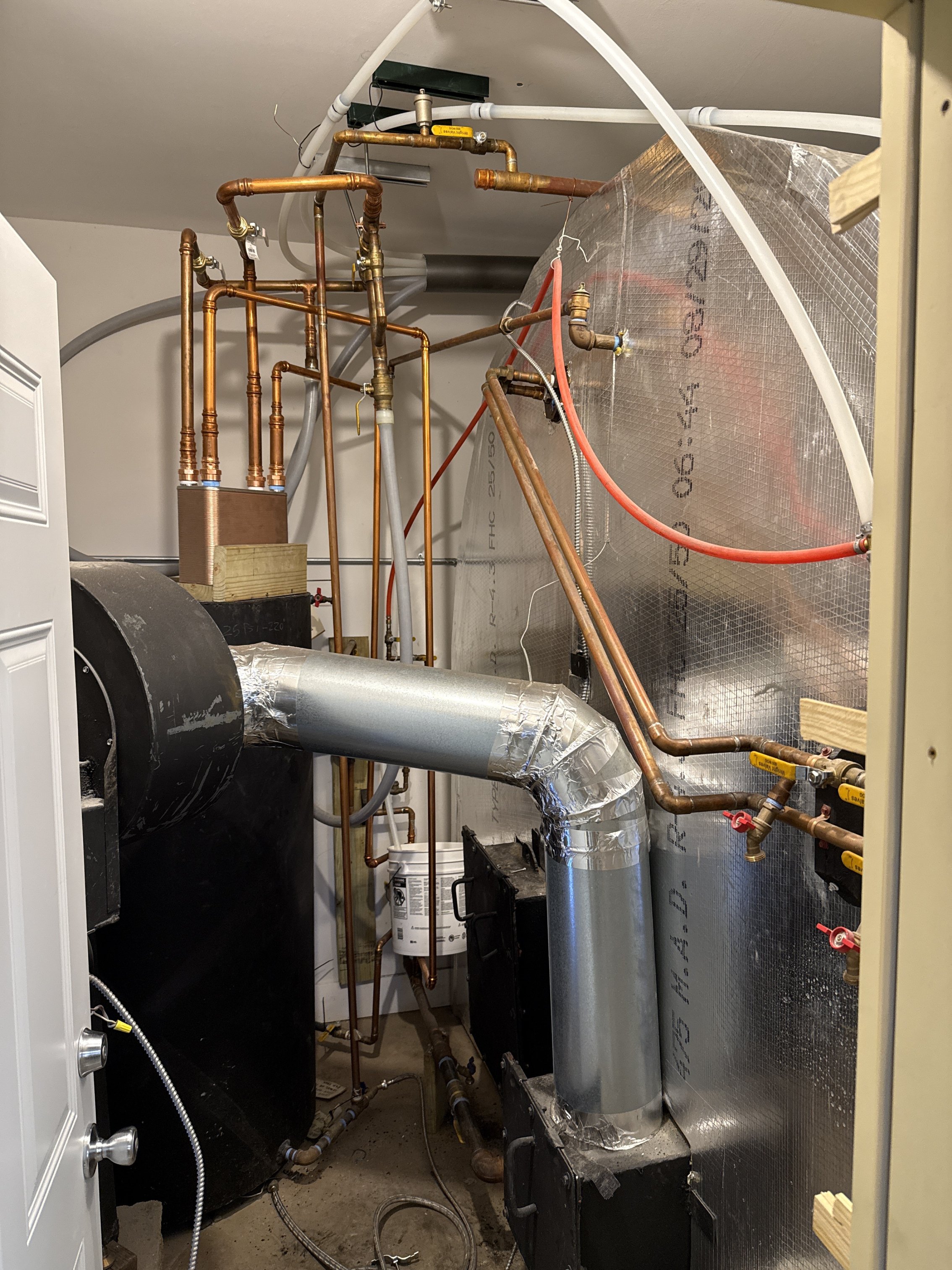 As I type this I’m looking at the propane boiler indicating 195 and that boiler hasn’t been fired for a couple hours based on the high temps being brought over from wood boiler. The wood boiler is indicating 205. That 100 plate heat exchanger really seems to work well.
