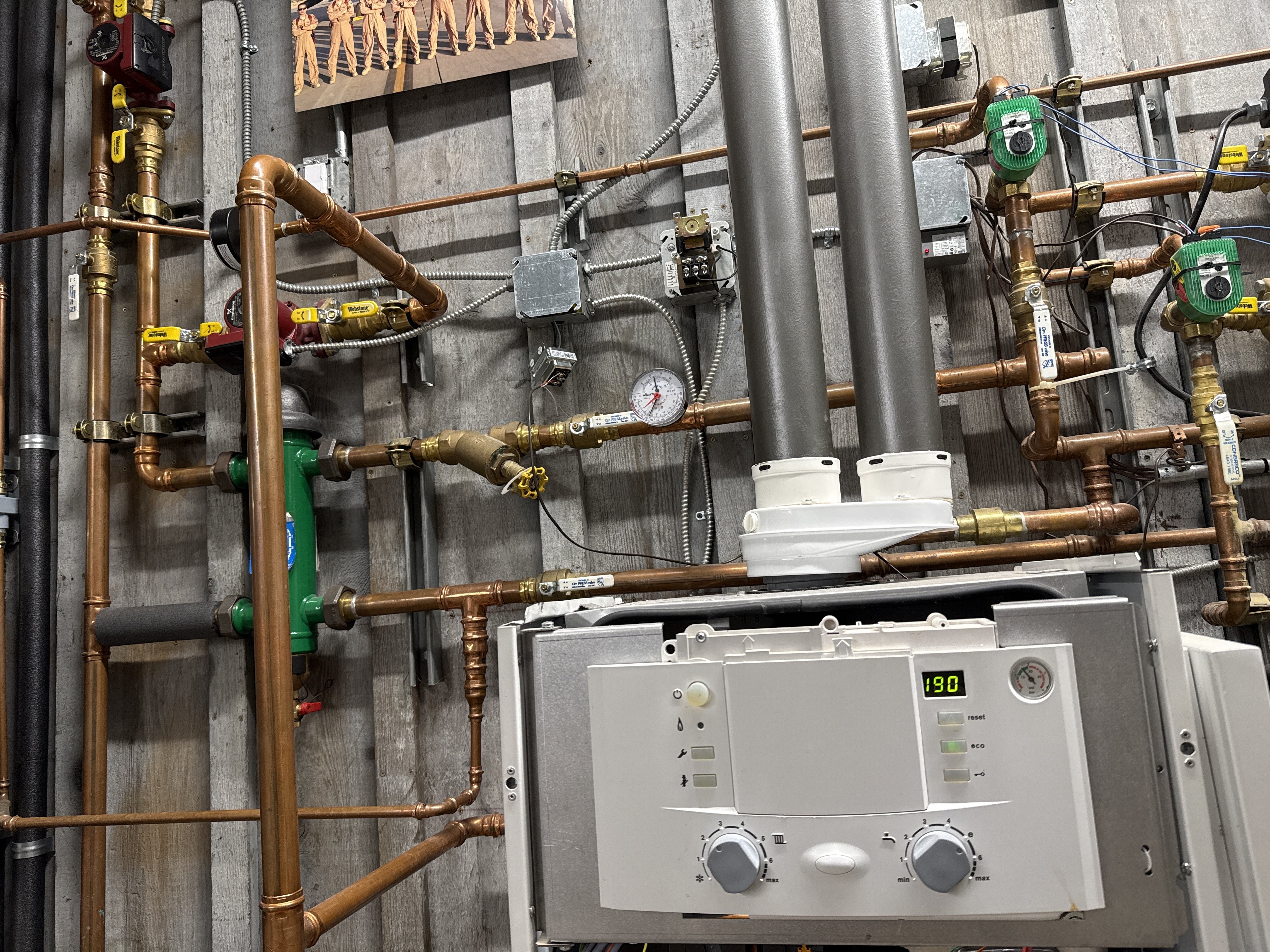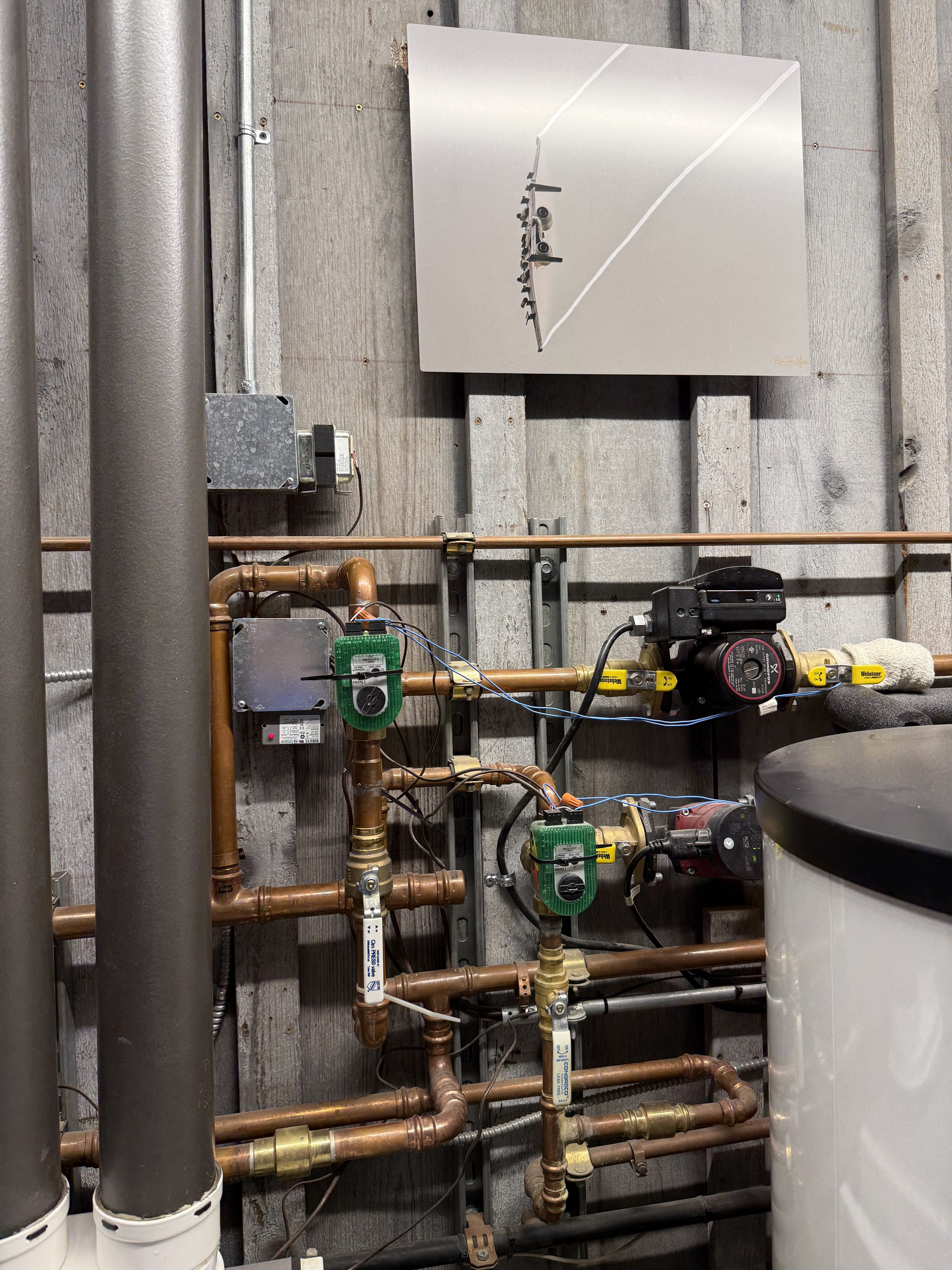 I believe it’s the propane boiler. The propane boiler is connected to outdoor sensor, the taco valves and low voltage wires connected to 11 zones. That is, in my mind, the brains of the operation.