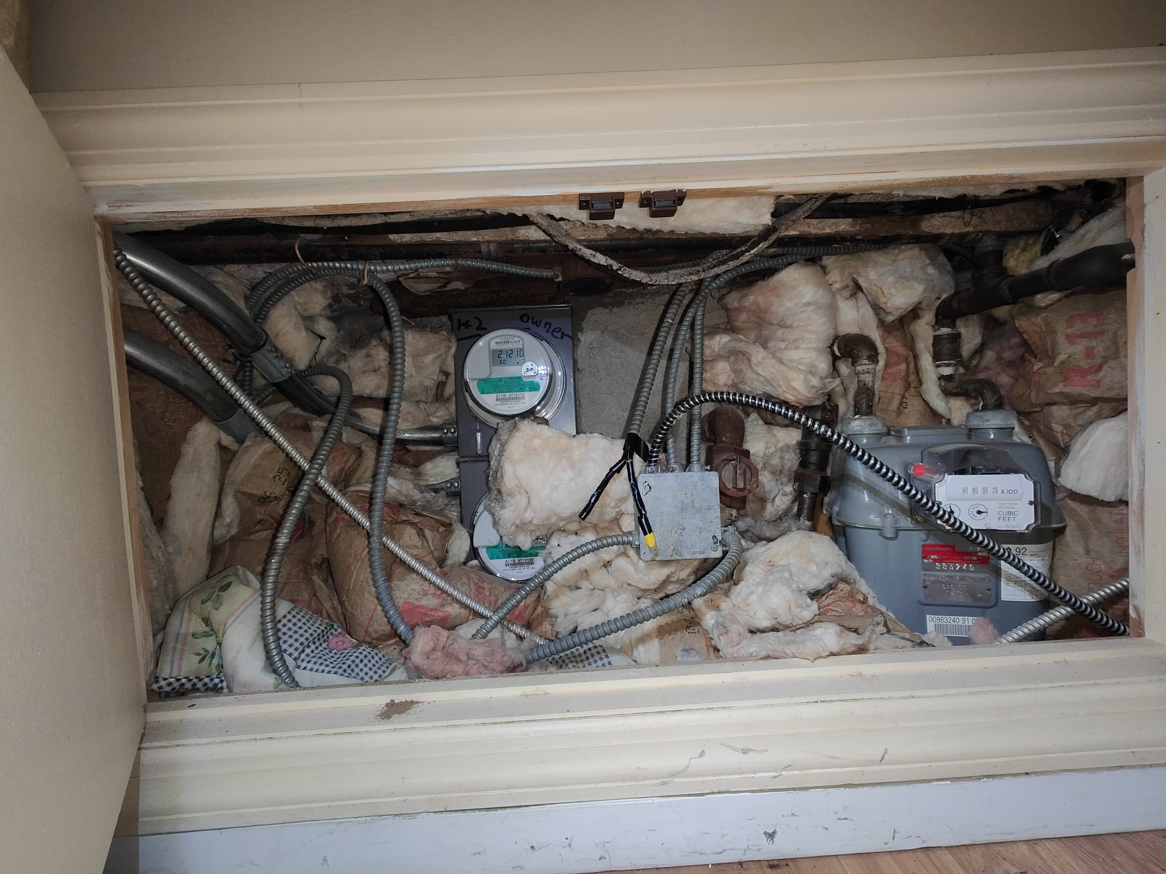 Their replacing the inlet pipe requires the home owner to get a plumber to install a new header for the meter. Then it involves permit and inspection. Cost wise it is 3k plus, I'm not sure if the dob inspector would want to bring more into compliance. Currently two electric meters and the gas meter share the same cabinet. Many old townhomes have this kind of cabinet. Not sure if the city inspector would flag it as issue after the header is done, or flag other issues.
