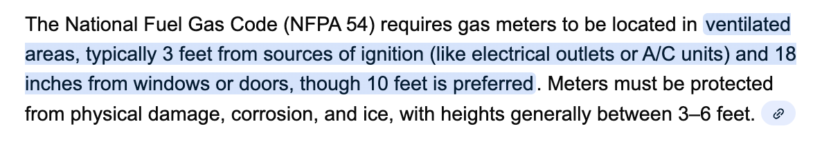 Check with the code official to see what code they use, what year version and download the section on gas meters.