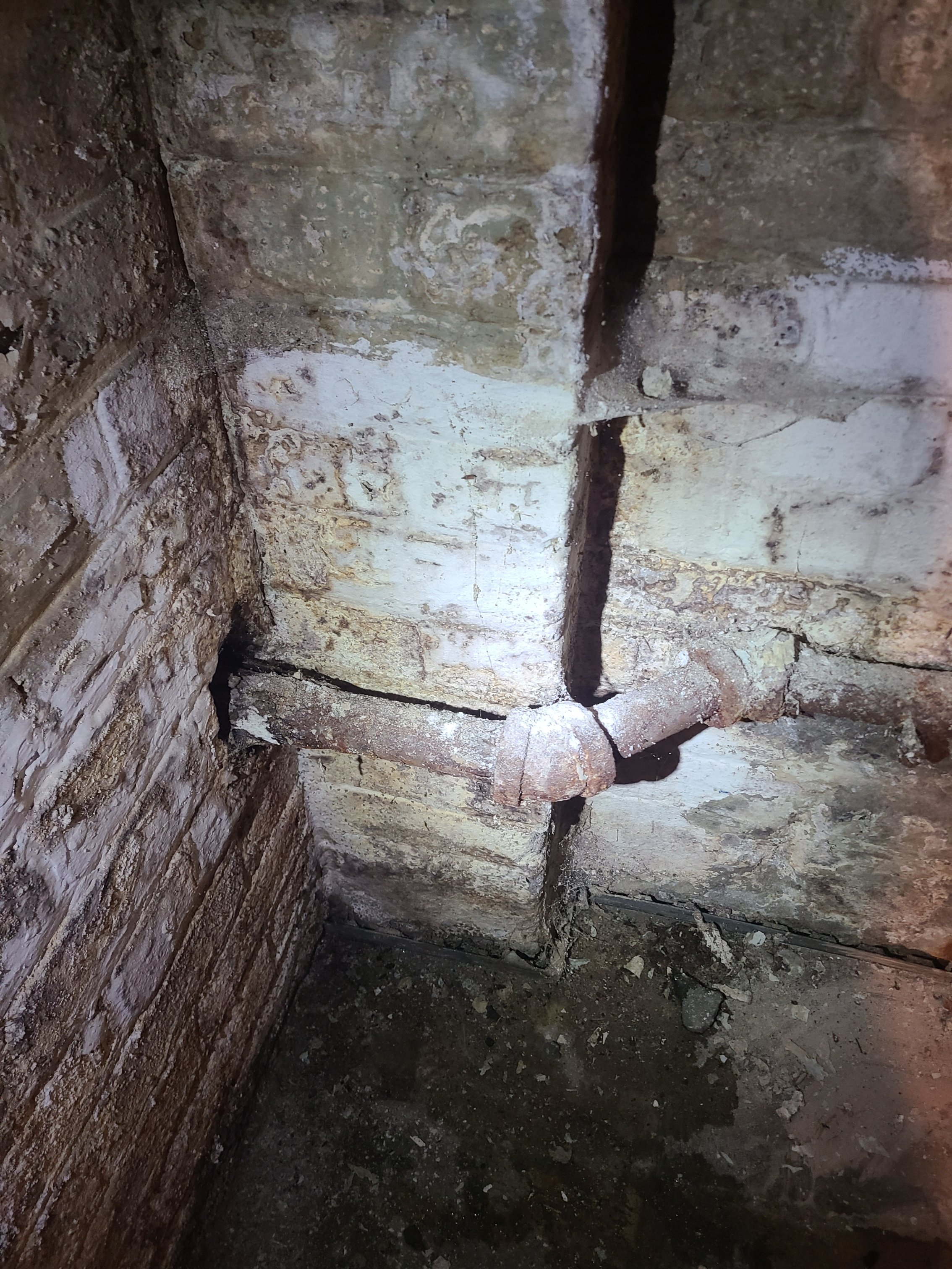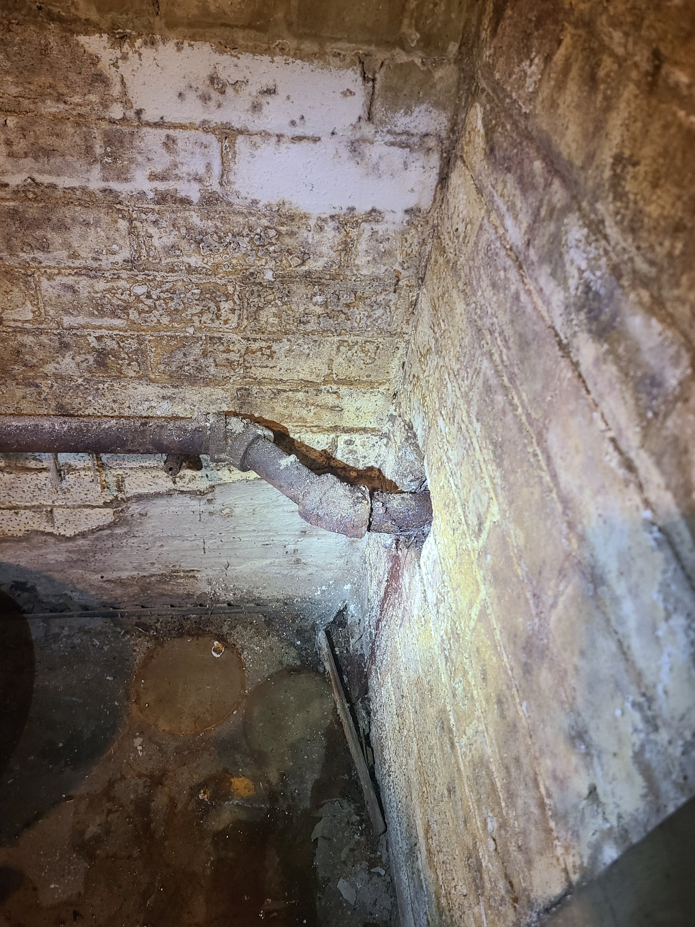 Leaking where it's sitting inside the wall. Photos of both sides of the wall.