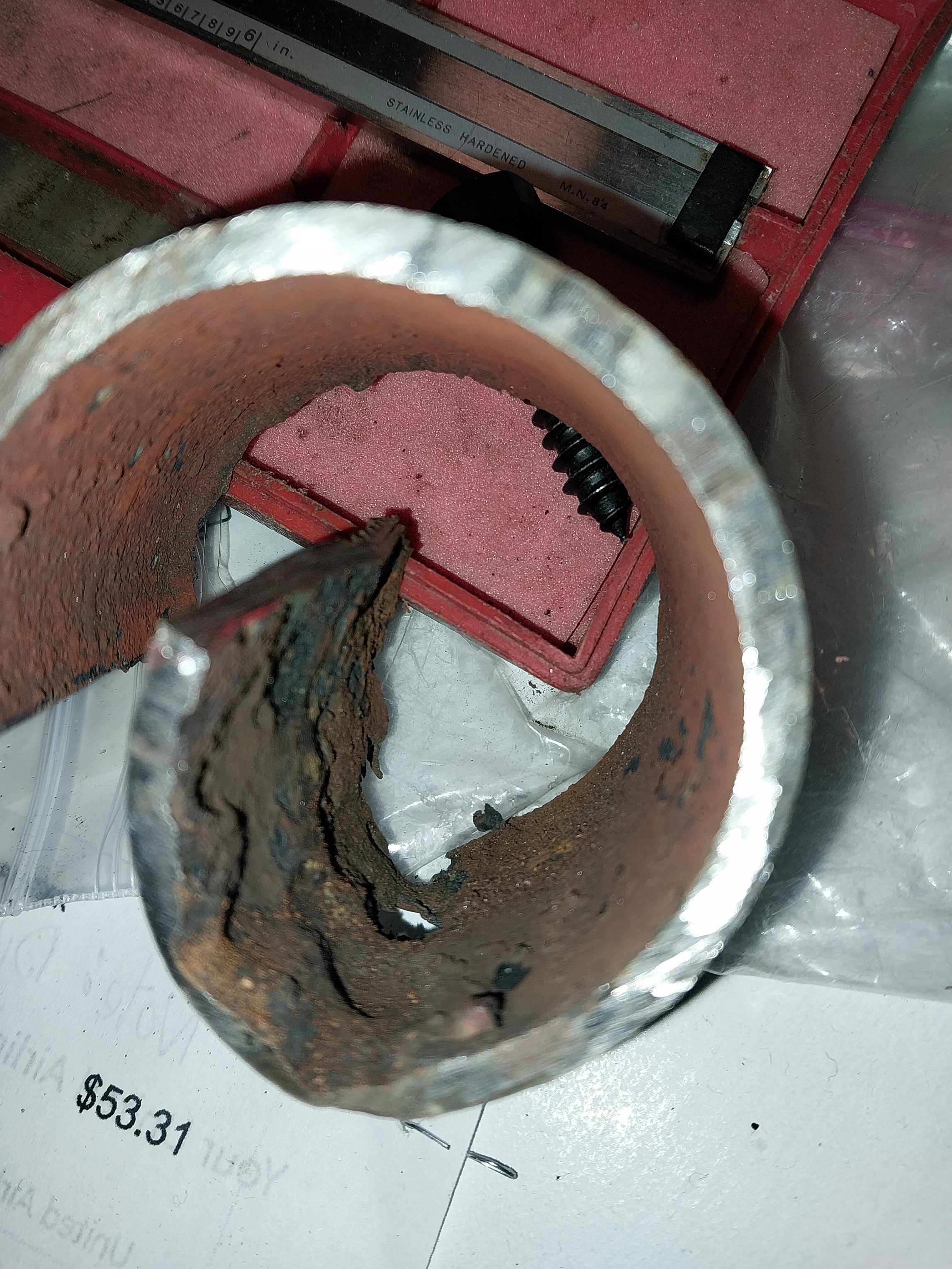 Good points, but also carbonic acid created in steam mains and dry returns (mine are brass though which is good) by the constant exposure of basically distilled water to air, which has a high affinity to absorbing CO2 which leads to carbonic acid causes corrosion of black iron pipes on the interior. I posted this elsewhere but take a look at this from my 16 ft. rotted steam main replacement job I did. Where did this rusted material go to? I think we all know the answer to that.