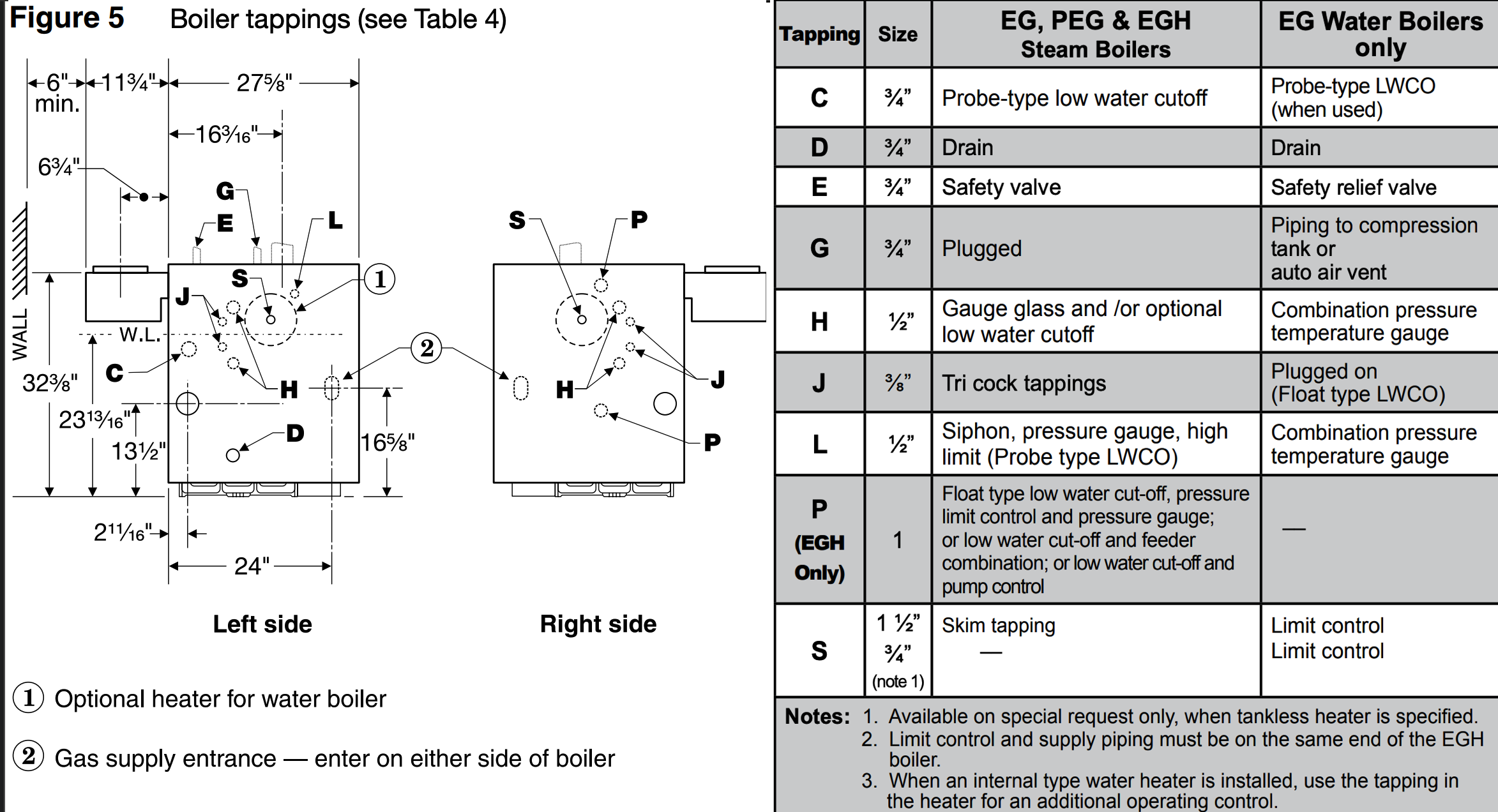 Weil McLain but what model and size? Does Weil McLain have a different policy on which side a single takeoff can be? AFAIK all the others say it must be on the side with the controls so that you don't get nuisance triggers of the LWCO due to the probe seeing a false low waterline due to waterline tilt.