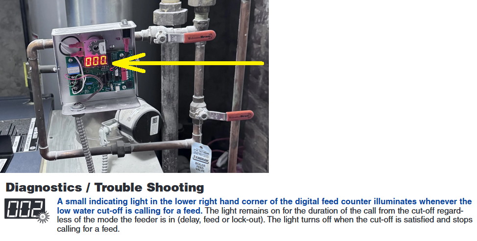 So the LWCO on the pipe outside the boiler is a secondary Safety while the one actually in the boiler LWCO Tapping on the other side is the “operating” control. That makes sense.