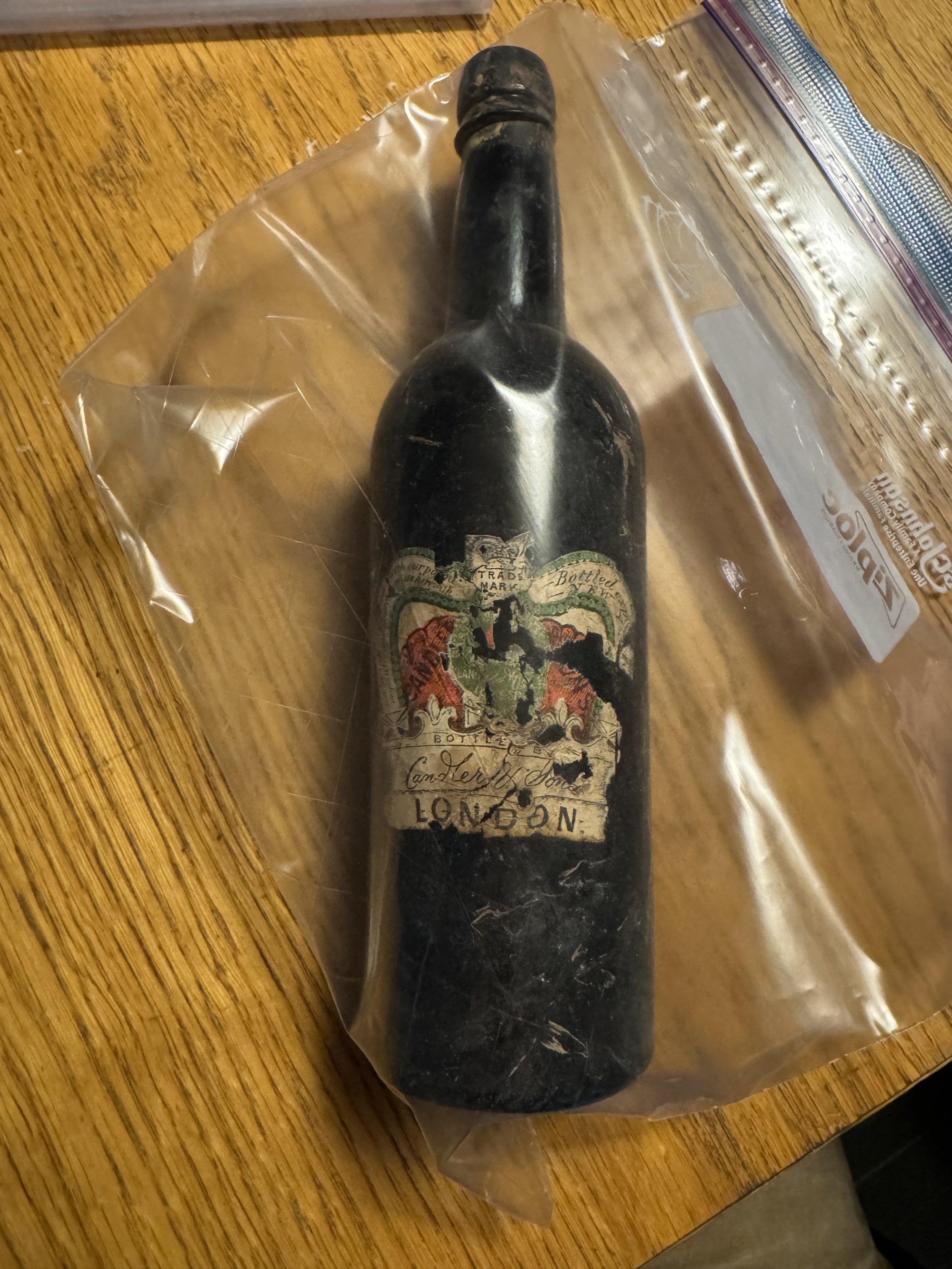 I found this unopened bottle of Bass Ale while I was fixing some damaged plaster in the ceiling of my 1848 New York farmhouse.