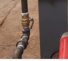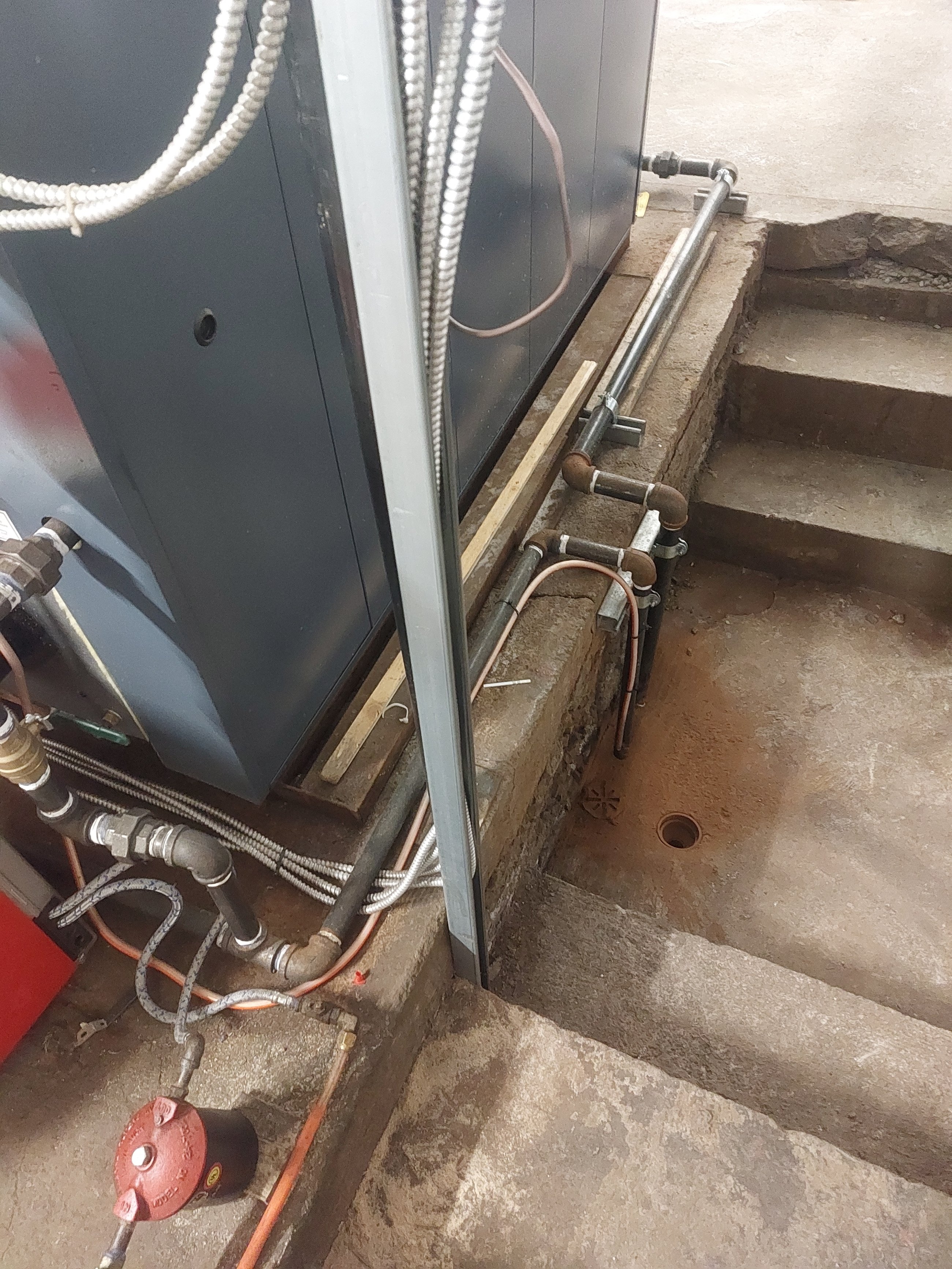 There's a good 10' of pipe and 6 elbows directing blow down water into a floor drain.